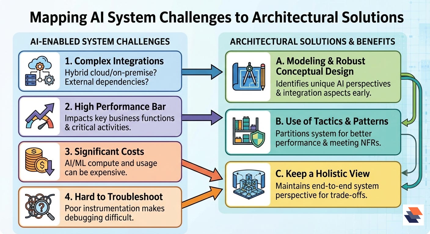 Architecting fundamentals can help navigate these complexities and the successful building and operation of these sorts of systems. Historically, an architect would aid in the building of a system and then would be able to sort of “walk away” or execute a new project. In this age of AI, this is simply not the case. The challenges of observability, integrated development, testing, the voice of the user, and their centrality to business outcomes place new demands on an architect.