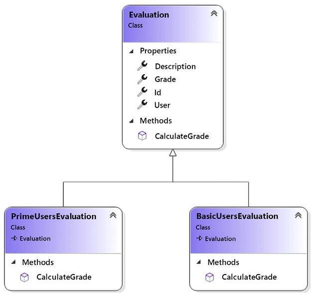 The following diagram shows how using the object-oriented approach makes reuse easier. As you can see, there are different ways to calculate the grades of an evaluation, considering you can be a basic or a prime user of the system: