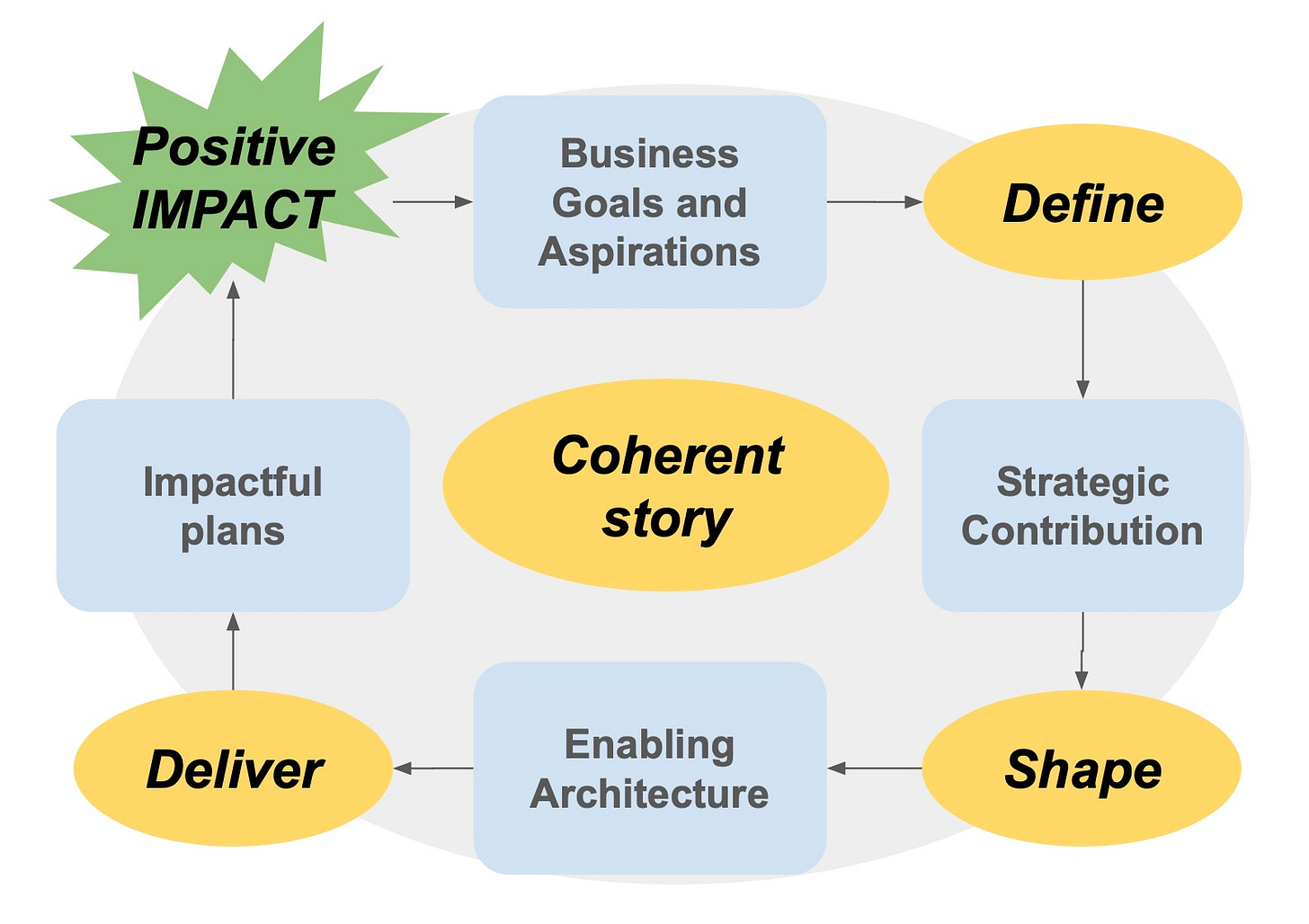 Whichever path you take, begin with intent, then shape how technology and teams will enable it, and only then plan and deliver the work. You don’t have to perfect everything at once. Identify the next logical step in your Define–Shape–Deliver journey, apply it, learn, and return to refine. Effective strategy evolves through a continuous loop—each cycle sharper and more connected to business outcomes than the last.